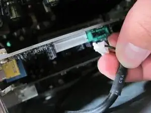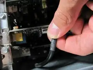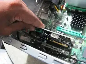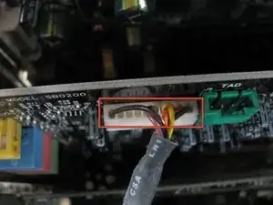 Найдите белый разъём на звуковой карте и отсоедините его, потянув за чёрный кабель.