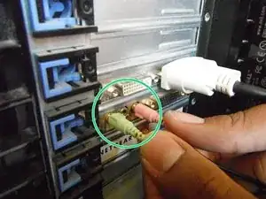 Перед тем, как работать с внутренней частью компьютера, убедитесь, что все провода отключены от аудиопортов на задней панели.