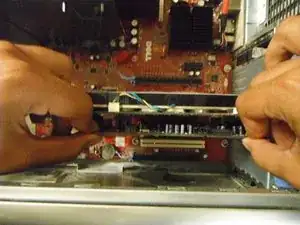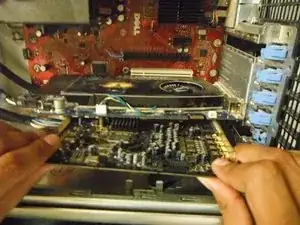 Снова, она может показаться закрепленной на месте. Немного увеличьте силу потягивания, пока карта не освободится от материнской платы.