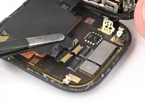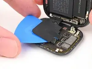 Не проводите открывателем дальше цифровой коронки — это может повредить кабели экрана.