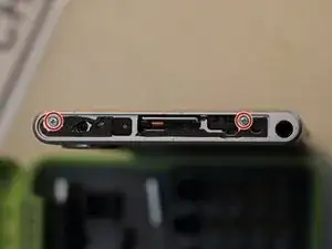 Удалите два винта Philipps #0, которые удерживают верхнюю часть рамки телефона, и снимите ее.