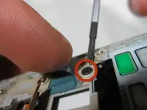 Удалите 2 заглушки винтов рядом с динамиком с помощью булавки рядом с камерой.