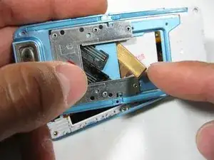 Используйте инструмент для вскрытия iPod, чтобы разъединить экранную крышку и механизм слайдера.