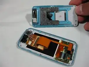 Продолжайте проводить инструментом для вскрытия iPod по стыку корпуса, чтобы отделить переднюю и заднюю половины корпуса.