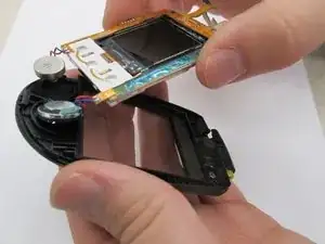 С помощью лопатки отсоедините шлейф, соединяющий дисплей и плату.