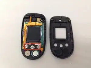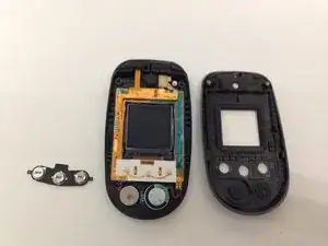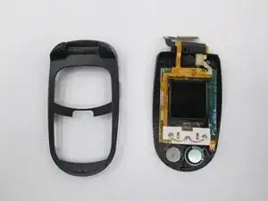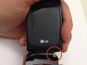 Держась за верхнюю и нижнюю части, проверните детали до тех пор, пока указанный шарнир не выпрыгнет. Две секции телефона теперь можно разъединить.