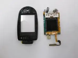 Сборка экрана полностью снята для облегчения доступа к соединениям динамиков при дальнейших ремонтах.