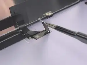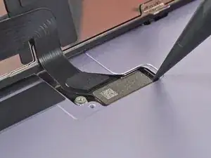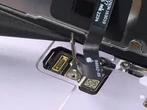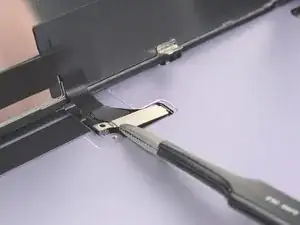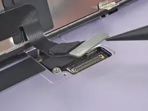 Используйте острый конец лопатки, чтобы отсоединить кабель дисплея, поддев разъём и выпрямив его вверх из гнезда.