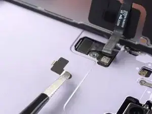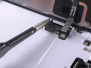 Используйте отвёртку Y000, чтобы выкрутить винт длиной 1 мм, фиксирующий кронштейн разъёма переднего датчика.