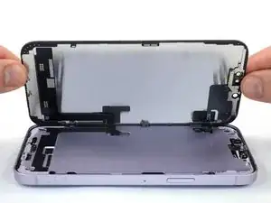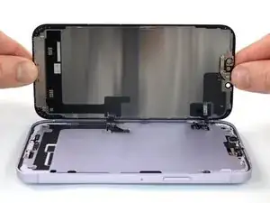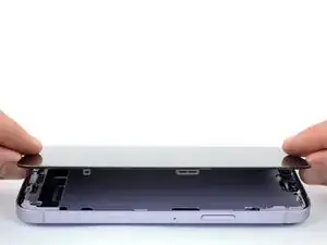 При обратной сборке поместите экран на место, совместите защёлки вдоль верхнего края и аккуратно прижмите верхний край, прежде чем защёлкнуть остальную часть экрана. Если он не защёлкивается легко, проверьте состояние защёлок по периметру экрана и убедитесь, что они не согнуты.
