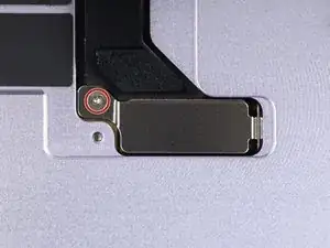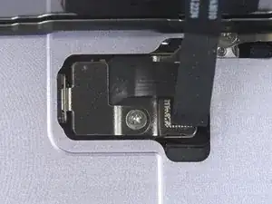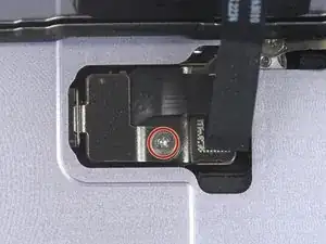 Используйте Y000‑отвёртку, чтобы выкрутить винт длиной 0,8 мм, закрепляющий кронштейн разъёма дисплея.