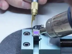 Закрепите камеру в специализированном держателе и нанесите немного пасты для флюса вокруг.