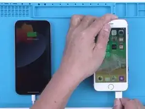 Последнее — протестировать переделанный iPhone. Телефон включается, а состояние батареи — 100%.