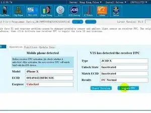 Нажмите «Activate FPC». Привяжите шлейф к телефону.