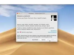 В первую очередь необходимо джейлбрейкнуть iPhone. Подключите телефон к компьютеру. Запустите программу и нажмите «Start». Телефон автоматически перейдёт в режим восстановления. Переведите телефон в DFU‑режим вручную. Джейлбрейк выполнен успешно.