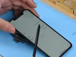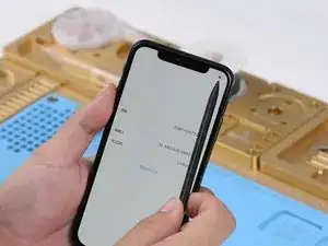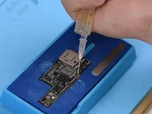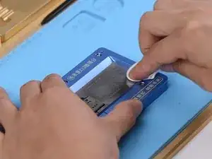 Далее нужно спаять два слоя вместе. Установите нижний слой в специализированную форму для риболлинга iPhone X.