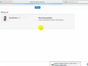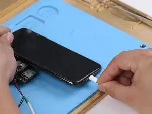 Подключите iPhone к компьютеру через USB‑кабель. Восстановите телефон через iTunes. После завершения отключите USB‑кабель, источник питания и сборку заднего стекла.