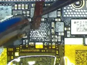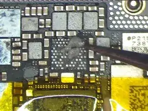 Попробуем заменить U_PMIC_E на новый и проверить результат. Сначала приклейте термостойкую ленту на U_MDM_E и модуль Wi‑Fi.