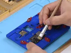 Продолжите нанесение флюса для паяльной пасты BGA на контактные площадки.