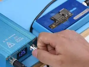 Разместите материнскую плату на специализированной нагревательной платформе. Включите платформу и установите температуру 150℃.