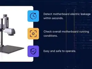 Тепловизор способен обнаружить утечку тока на плате за считанные секунды. Неисправные компоненты будут выявлены мгновенно, как только вы поместите плату под камеру, что значительно повышает эффективность ремонта. При проверке общего состояния платы тепловизор позволяет точно локализовать неисправные элементы.