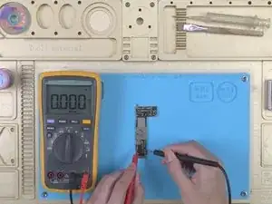 Далее нужно снять плату и локализовать неисправный компонент для ремонта. Измерьте диодное значение линии PP_BATT_VCC мультиметром. Значение диода равно 0. Это подтверждает, что линия PP_BATT_VCC имеет короткое замыкание.