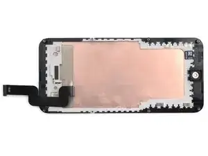 Пара крупноплановых снимков экрана Fairphone 6 и кабеля-ленты экрана.