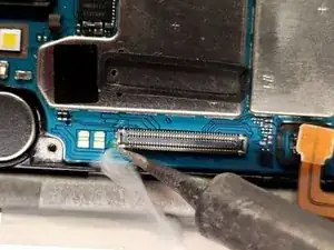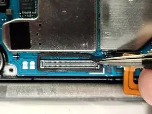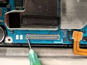 Используйте флюс и паяльник, чтобы перепаять первый контакт FPC на материнской плате.