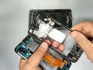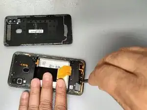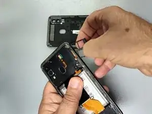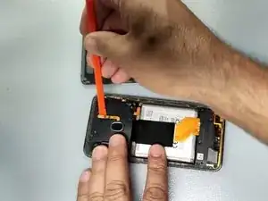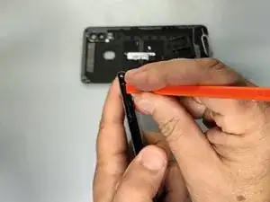 Используйте пластиковый инструмент, чтобы отделить заднюю крышку от корпуса. Начинайте от отверстия лотка SIM.