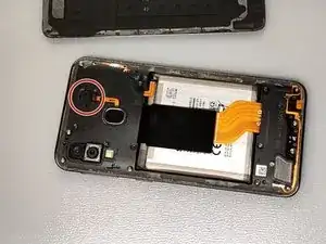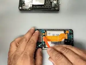 Снимите пластиковую крышку с разъёма шлейфа сканера отпечатков и отключите шлейф.