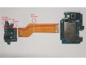 На этих фотографиях показана линия +5 В от разъёма зарядки до материнской платы.