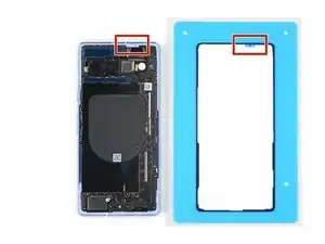 Если у Вас новая задняя крышка, на ней может быть уже установлен клей в нижней и верхней частях, и Вы можете перейти через два шага к нанесению периметрального клея.
