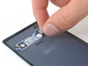 Разместите клей на крышке платы, прямо под задними камерами.