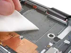 Сотрите остатки изопропилового спирта безворсовой или микрофибровой тканью.