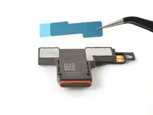 Используйте пинцет или пальцы, чтобы удалить клейкую ленту с нижнего динамика.