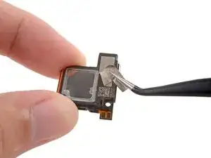 С помощью пинцета или пальцами оторвите клейкую ленту от верхнего динамика.