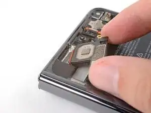 Следуйте этому руководству, чтобы снять верхний динамик, если вы ещё этого не сделали.