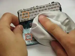 Нижняя сторона платы прикреплена к телефону с помощью чёрной ленты. Вы не сможете полностью снять плату, но получите доступ к клавишам клавиатуры, расположенным на нижней стороне платы.