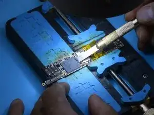 iPhone XR перезагружался после падения и зарядки. Телефон можно было прошить, но он продолжал перезагружаться. При проверке термовоздушным пистолетом индуктивности не обнаружили псевдопайки. Поскольку USB-ИС находится в начале цепи зарядки и имеет высокий процент повреждений, приоритетом стала замена USB-ИС. После замены USB-ИС телефон включился и неисправность устранена.