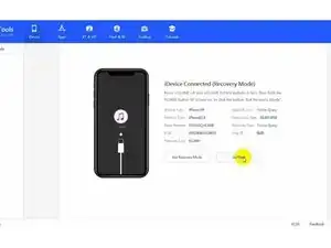 Затем подключаем телефон к компьютеру и прошиваем, чтобы проверить, повреждена ли система. Переводим телефон в режим восстановления с помощью кабеля Restore-Easy. Подключаем USB-кабель данных. Начинаем прошивку. Телефон прошивается. Но после прошивки телефон всё ещё не включается и продолжает перезагружаться.