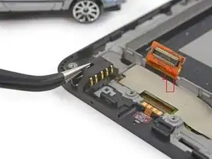 Используйте плоский конец лопатки, чтобы приподнять разъём фронтальной камеры с платы.