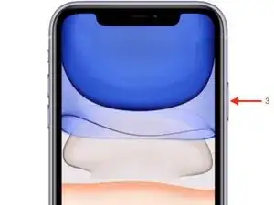 Наконец, нажмите и удерживайте боковую кнопку (3), пока не появится логотип Apple, а затем отпустите.