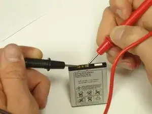 Прикоснитесь красным щупом к положительному контакту и черным щупом к отрицательному контакту.