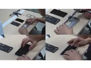 Затем извлеките стекло с OCA и снимите защитную плёнку OCA с тягой‑ленты. Далее совместите стекло с ЖК‑панелью и прикрепите его в правильное положение. После этого нажмите одной рукой по центру стекла и аккуратно приладьте его к ЖК‑панели.