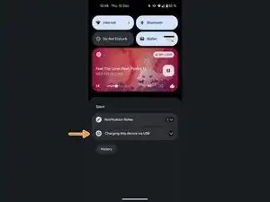 Опустите шторку уведомлений и выберите Зарядка этого устройства через USB.