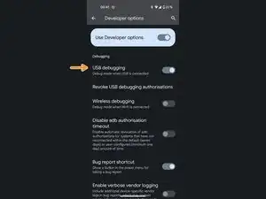 В параметрах разработчика найдите опцию Отладка по USB и включите её.
