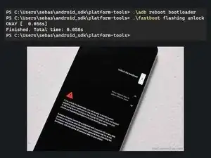 Если устройство перезагрузилось после разблокировки загрузчика, снова загрузитесь в загрузчик, удерживая кнопку питания и кнопку уменьшения громкости, пока устройство не перезагрузится в загрузчик.