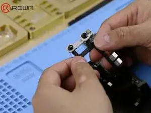 Сначала удалите чёрный клей вокруг. Затем нанесите немного припойной пасты средней температуры на контактную площадку. Припаяйте контактную площадку припоем с помощью паяльника при 365℃. По завершении очистите очистителем для печатных плат.