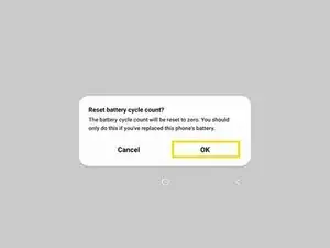 Выберите «Ок», чтобы завершить сброс циклов аккумулятора.