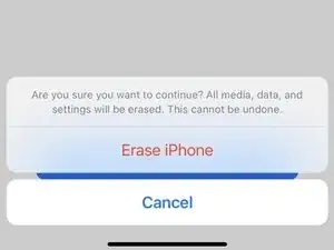 iPhone подтвердит, какая информация будет удалена в процессе. Нажмите Продолжить внизу экрана.